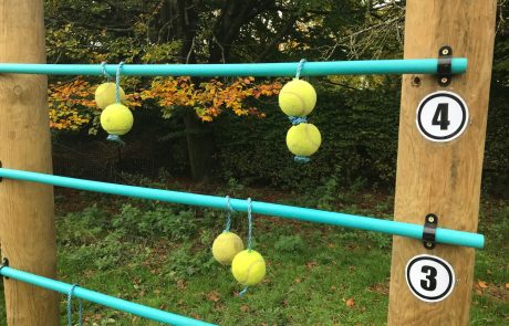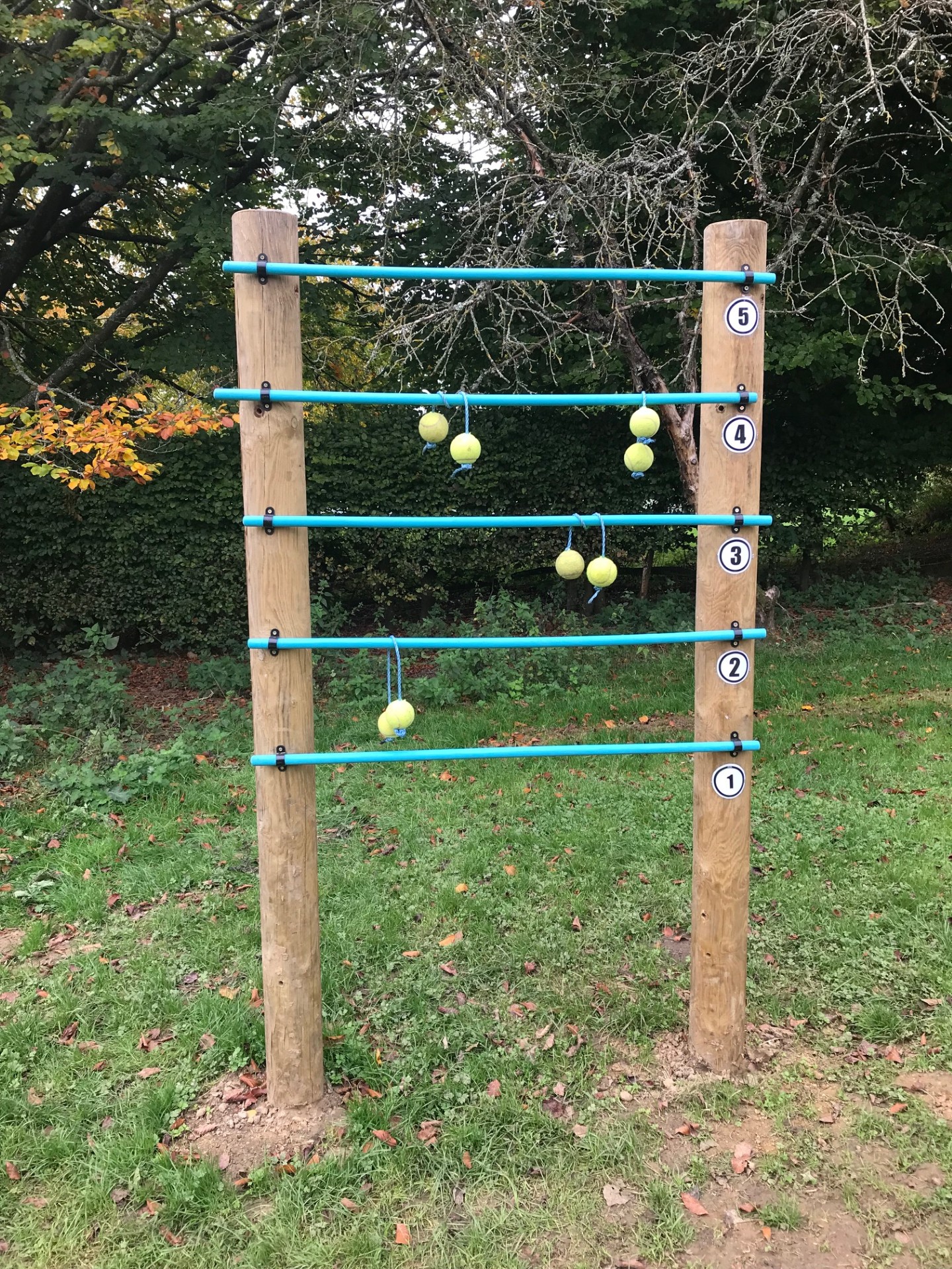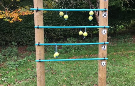 A drill was then used to make holes in two tennis balls and then strung them with rope to create ‘bolos’ in order to create and play their very own giant version of ‘ladder tennis’.